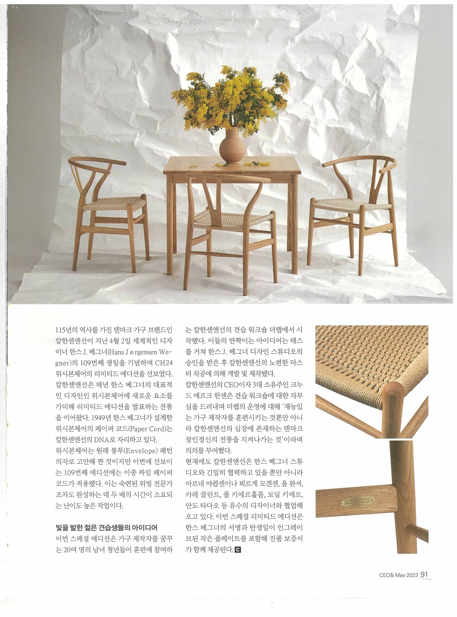 Carl Hansen & SonBy / Previous Next 미디어 PR 브랜드 PR 에셋 분석 및 홍보 전략 수립보도자료 작성 및 배포브랜드 PR자료를 활용한 효과적인 피칭매체 촬영 진행미디어 릴레이션 & 미디어 트립 핸들링위클리, 먼슬리 리포트 그 외 이벤트 기획 & 진행컨텐츠 제작인플루언서 마케팅