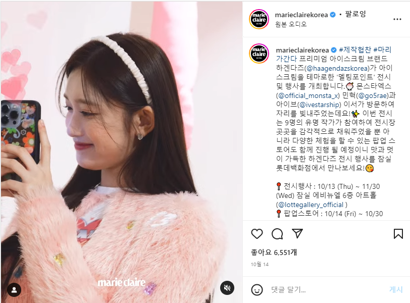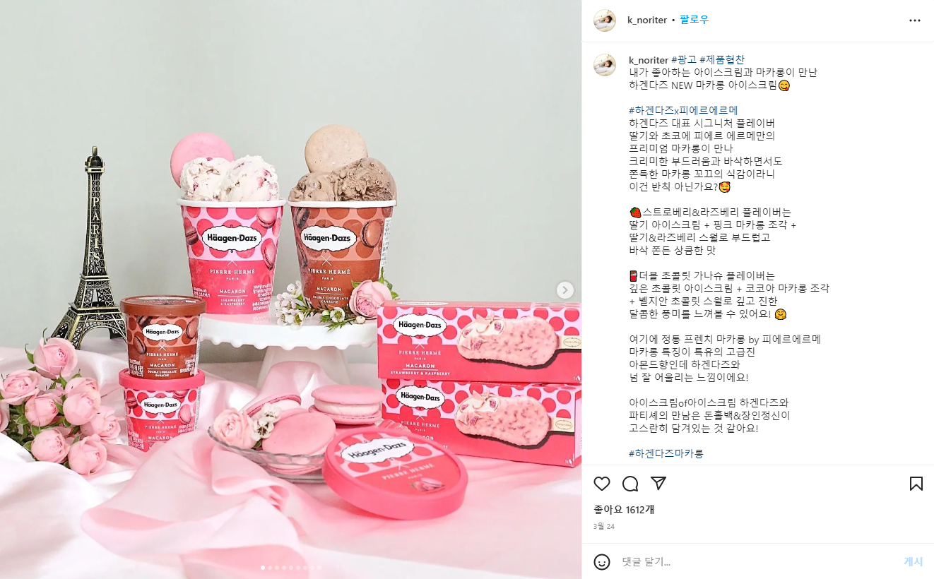 Haagendaz KoreaBy / Previous Next 인플루언서 마케팅 인스타그램 마케팅 기획 및 진행인플루언서 섭외신제품 시딩포스팅 가이드라인 작성 및 전달인스타그램 포스팅 관리 및 핸들링브랜드 이벤트 초대시딩 키트 기획 및 제작 그 외 디지털 컨텐츠 제작미디어 SNS 채널 AD 어레인지매체 제품 시딩셀럽 섭외 및 핸들링